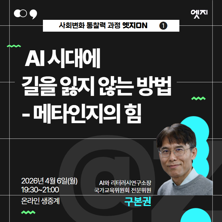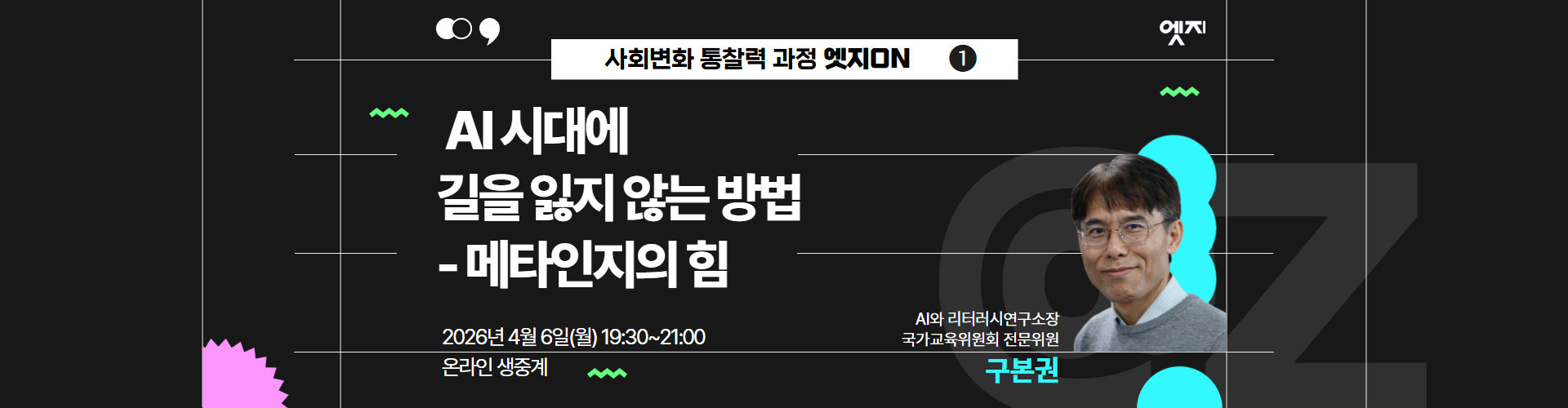 2026년부터 엣지ON은 한 달에 한 번, 그 시기에 필요한 사회변화 트렌드와 의제를 발굴하여 매월 첫 째주 월요일에 진행합니다.