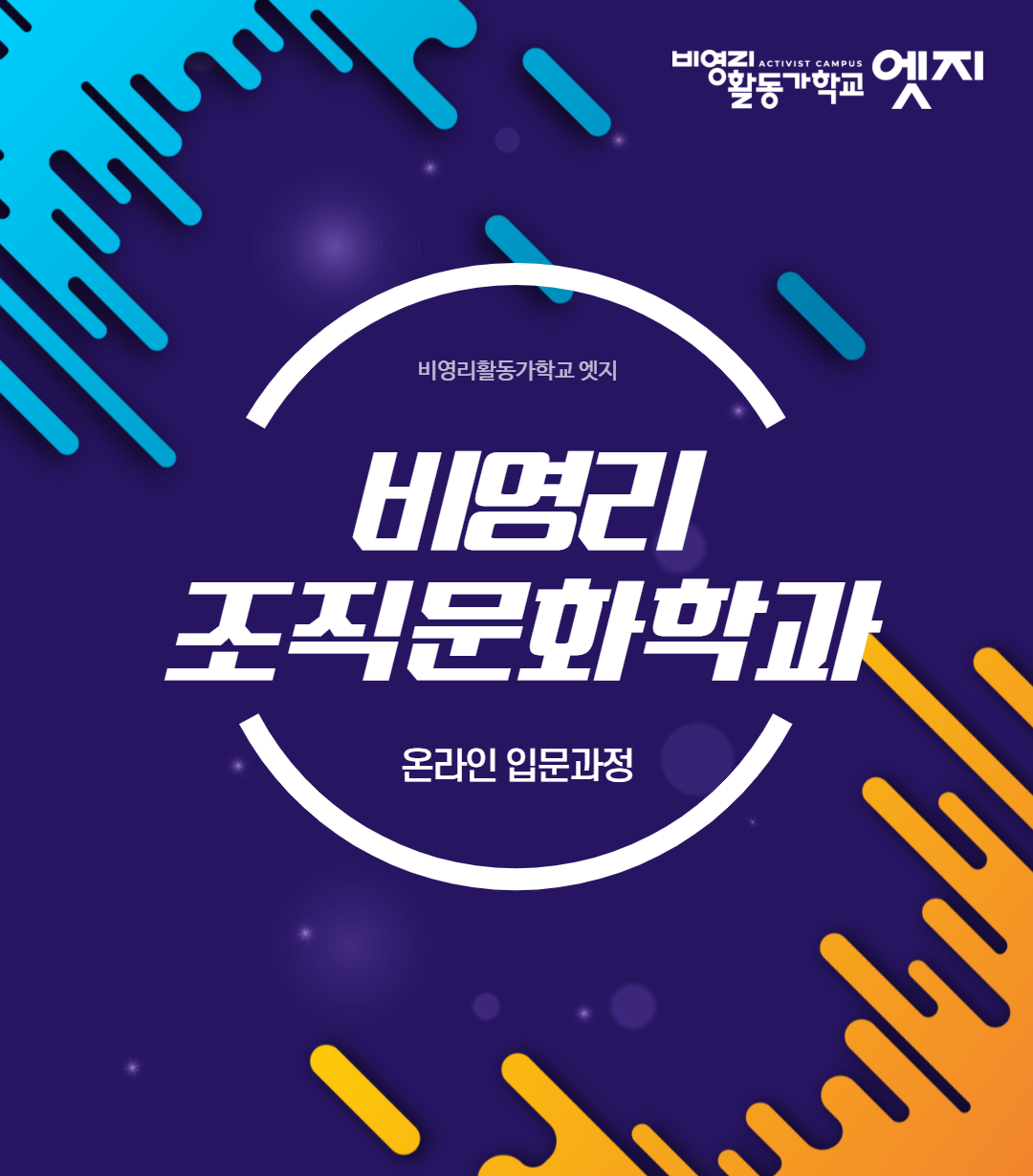 비영리 조직과 활동가 전문 교육기관을 목표로 하는 <비영리활동가학교 엣지>는 “활동가가 더 나은 사회를 상상하고 실현할 수 있도록 학습과 교류, 성장을 지원합니다.” 이를 위해 2024년부터 활동가를 위한 경력별 정규학과 외에도 지금 시기 비영리 조직과 활동가에게 꼭 필요한 주제별 교육과정을 운영하고 있습니다. 사회변화에 관한 통찰력을 키우는 <엣지ON>을 시작으로 <비영리 변화성과관리 입문과정>, <활동가의 책읽기 과정>을 운영했습니다. 그리고 올해 또 하나의 교육 과정을 오픈합니다. 바로 “비영리 조직문화학과"입니다.